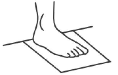 Find a hard flat surface, tape a piece of blank paper, flush against a wall. Place your foot on the paper, with your heel flush against the wall, stand up straight.