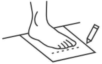 Have a friend mark the longest part of your foot (referred to as heel-to-toe length) on the paper with a pen or pencil, or measure yourself if necessary. Repeat with the other foot, as right and left sizes may be different